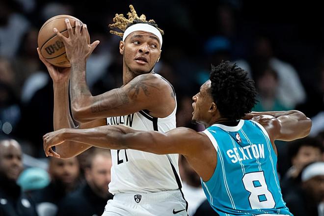 本場比賽中,籃網(wǎng)的先發(fā)中鋒諾阿-克勞尼(Noah Clowney)的表現(xiàn)依然是一塌糊涂的水平,依然是沒有任何的起色。克勞尼全場出場15分04秒,投籃2中0,三分線外2中0,全場1分未得,僅貢獻(xiàn)5籃板2助攻的數(shù)據(jù),還有2次失誤和1次犯規(guī),正負(fù)值為-6??藙谀嵩谶M(jìn)攻端毫無貢獻(xiàn),他的得分能力并沒有發(fā)揮出來,他的手感依然很不理想,他也沒有什么其他方面的才能,他在進(jìn)攻端的表現(xiàn)一無是處。不僅如此,克勞尼在防守端的表現(xiàn)也是慘不忍睹的,他也是沒有發(fā)揮出自己在防守端的特點,沒有展現(xiàn)出任何的作用??藙谀嵋菜闶堑玫搅瞬簧俚某鰣鰰r間,然而他在場上的效果實在是有些不盡如人意,在攻防兩端看起來都沒有任何的存在感。